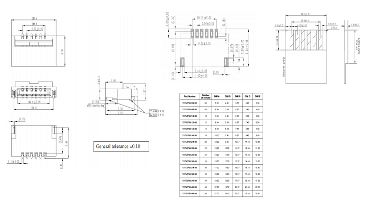 特征: 高度:1.00mm 间距:0.50mm 通流:0.5A/PIN